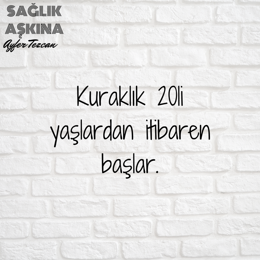 Kötü haber, vücutta 20li yaşların başlarından itibaren dehidrasyon yani kuraklık başlar. İyi haber su harika bir anti-aging maddedir. Yani, yaşlanma hızını en azından susuzluk anlamında yavaşlatabiliriz. Sorunumuz, susuzluğumuzu algılayabilmektir. Aslında vücudumuz doğrudan ya da dolaylı olarak bize sinyaller gönderir, bunları görmezden gelmemeliyiz.