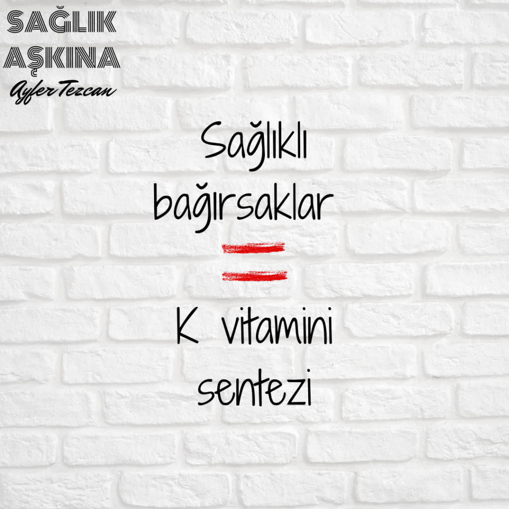 Bağırsaklarımız sağlıklıysa K vitamini sentezi düzenli olarak bağırsaklarımızda yapılır. Nenelerimizin dedelerimizin beslenme alışkanlıklarını sürdürebiliyorsak sorun yok. Çünkü, K vitaminin hem vücudumuzda sentezi yapılmış olur hem de bu beslenme şekliyle yaşamımızı sürdürüyorsak eğer, vücudumuzda sentezlenemeyen K vitamini formları da beslenmeyle dışarıdan alınmış olur. Kemik sağlığıyla olan bağlantısına geçmeden önce, kısaca vücudumuzdaki çok önemli olan diğer bir görevine değinmek istiyorum.